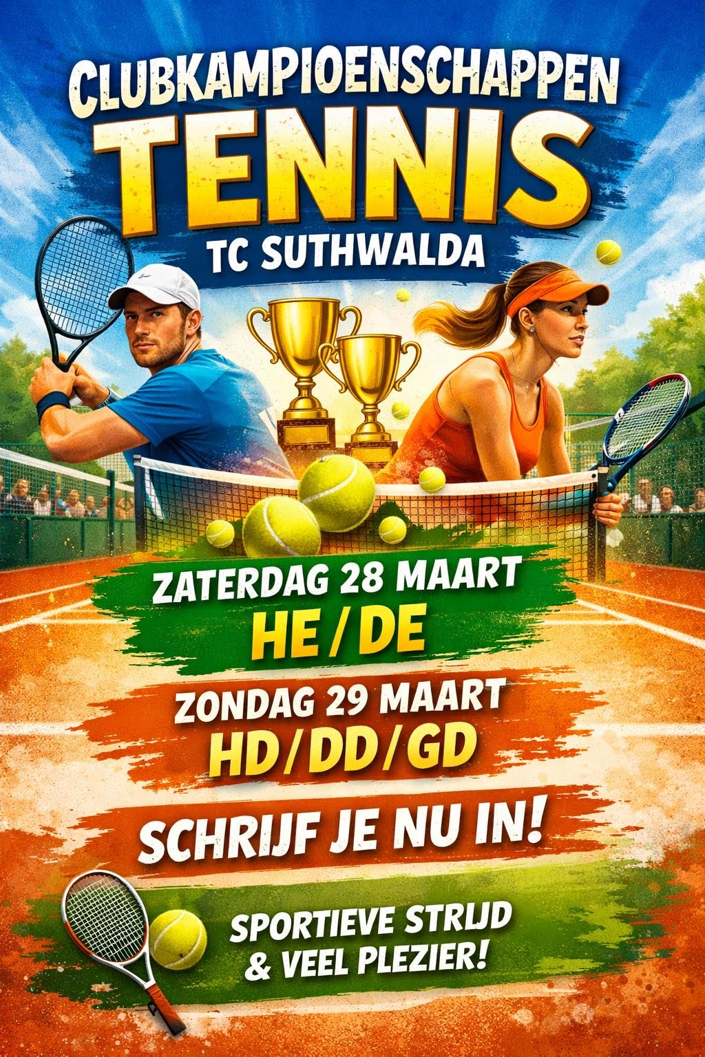 Wij kunnen nog wel wat inschrijvingen gebruiken voor de clubkampioenschappen op zaterdag 28 maart (HE/DE) en zondag 29 maart (HD/DD/GD). Je speelt maximaal 3 wedstrijden van maximaal 1,5 uur (inclusief inspeeltijd) op 1 dag. Je kunt je voor maximaal 2 onderdelen en voor maximaal 1 onderdeel per dag inschrijven. Je wordt ingedeeld op sterkte. Al naar gelang het aantal aanmeldingen speel je waarschijnlijk 3 poulewedstrijden of 2 poulewedstrijden en eventueel een finalewedstrijd. Toernooi is in principe binnen maar wie liever buiten speelt mag ook buiten spelen (mits de banen al bespeelbaar zijn). Deelname is alleen voor leden en gratis (ook voor mensen zonder zwerfpas voor de hal). Zorg wel voor juist schoeisel om binnen mee te spelen. Doe gezellig mee want het toernooi biedt voor elk wat wils en bij voldoende aanmeldingen speel je een paar leuke wedstrijden op je eigen niveau! Aanmelden kan via;